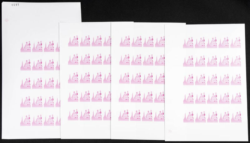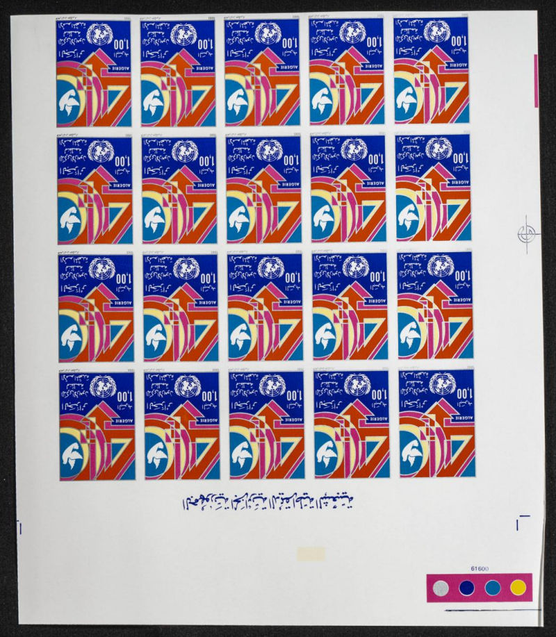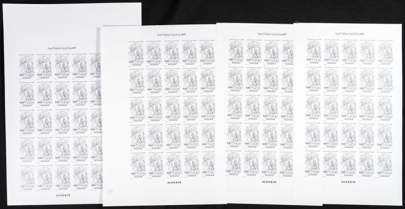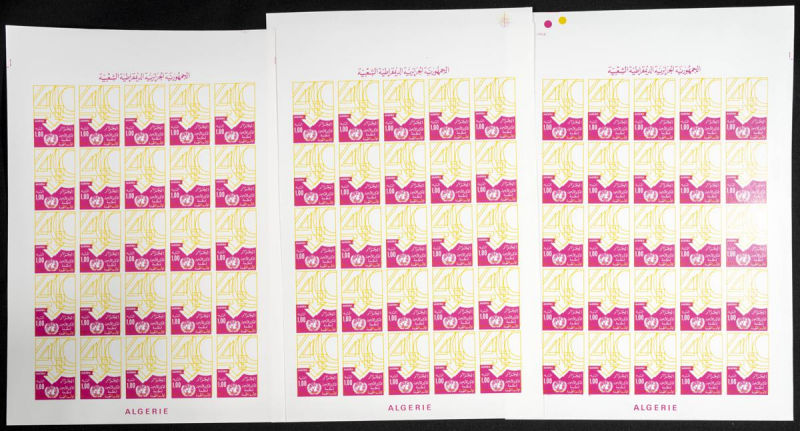 |**|Yvert 841. 1985. UNO anniversary. Group of progressive plate proofs of the set. TO EXAM. Description of lots is limited to the cataloguing of the stamps and their characteristics. The total of the material included in each