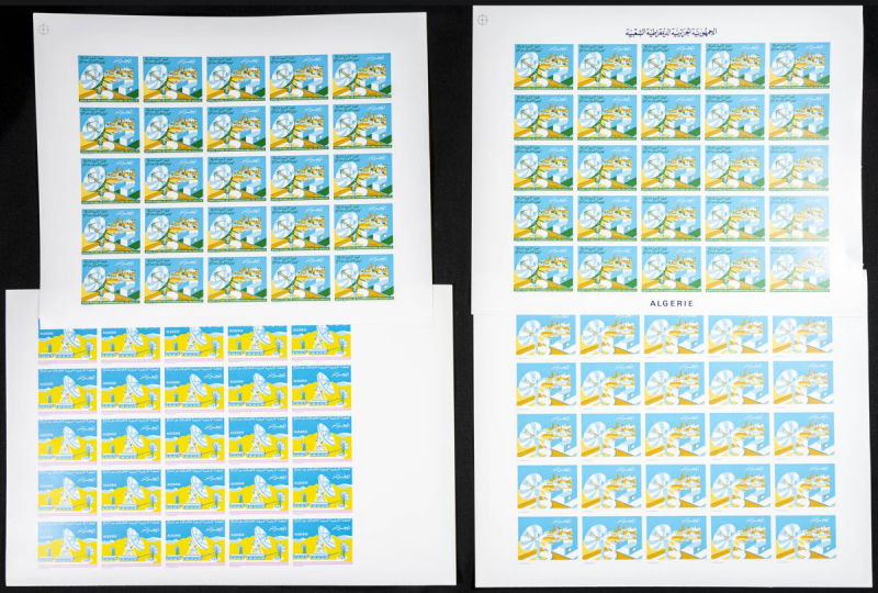 |**|Yvert 614/16. 1975. Satellite communication. Group of progressive plate proofs of the set. TO EXAM. Description of lots is limited to the cataloguing of the stamps and their characteristics. The total of the material