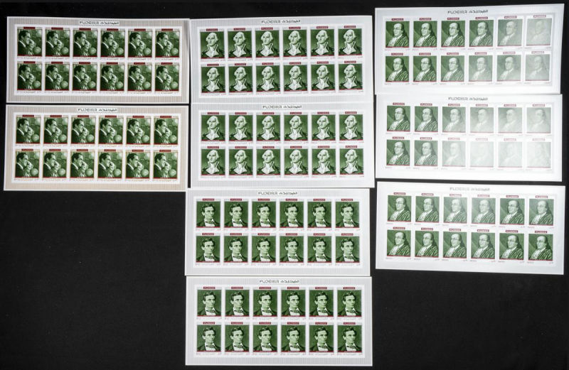 |**|1970. American history. Group of IMPERFORATED sets. (Michel: 485/94). TO EXAM. Description of lots is limited to the cataloguing of the stamps and their characteristics. The total of the material included in each case is