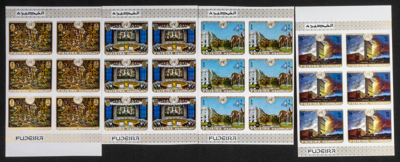 |**|1970. 25 years UNO. Group of IMPERFORATED sets. (Michel: 505/08). TO EXAM. Description of lots is limited to the cataloguing of the stamps and their characteristics. The total of the material included in each case is