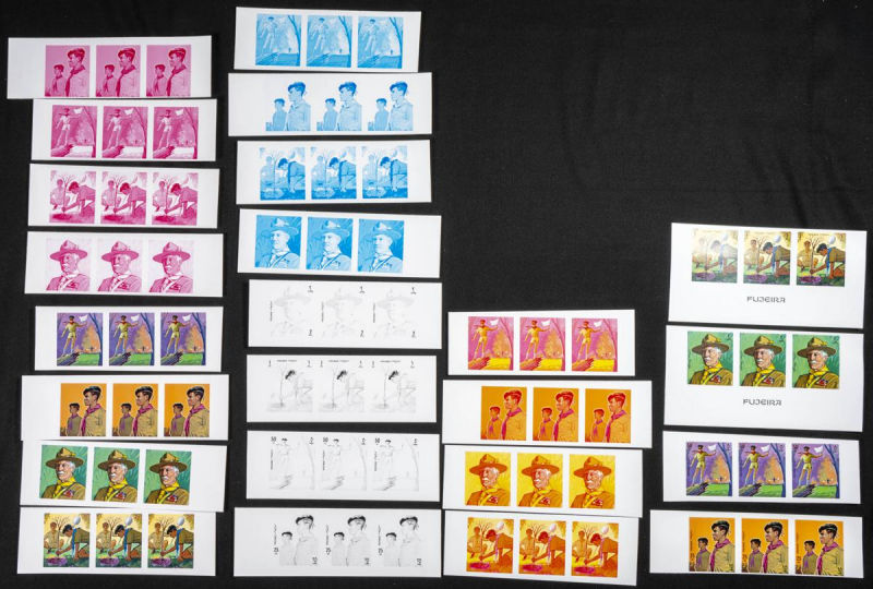 |**|1970. Scouting. Group of progressive plate proofs of the set. (Michel: 513/16). TO EXAM. Description of lots is limited to the cataloguing of the stamps and their characteristics. The total of the material included in each
