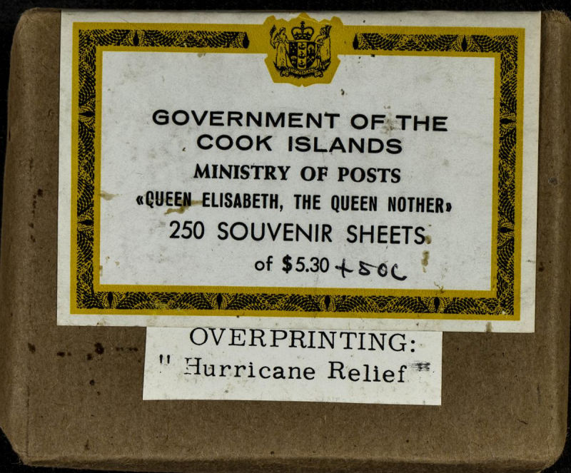 2849 image|**|Yvert B196. 1990. Queen Elizabeth, the Queen Mother, “Hurricane Relief”. Set of 250 sealed souvenir sheets for shipment to post offices. (To preserve the integrity of the lot and its seal, the image of the souvenir sheet doesn’t correspond to that of the lot for sale, it’s an image of a loose piece). TO EXAM.
