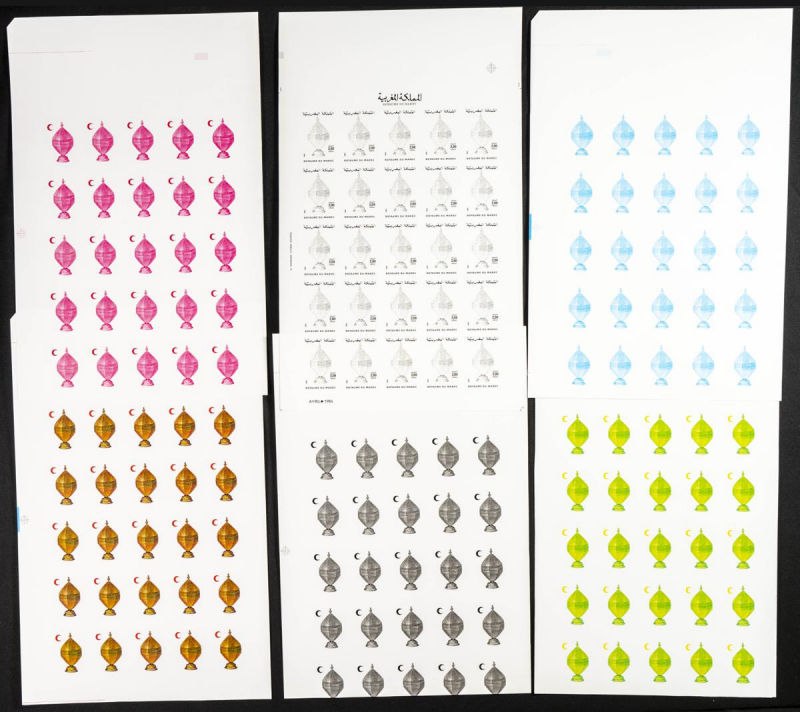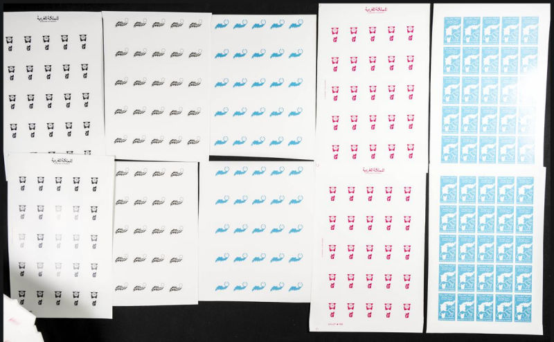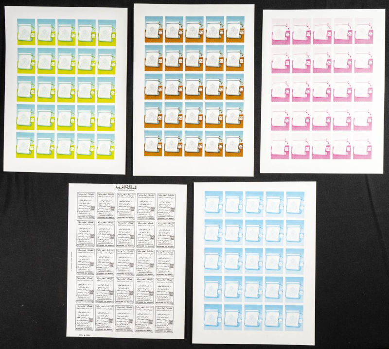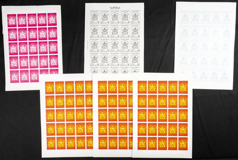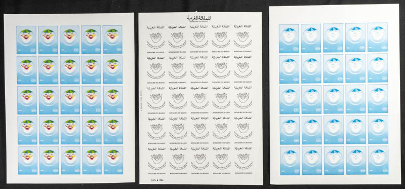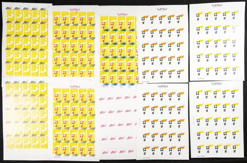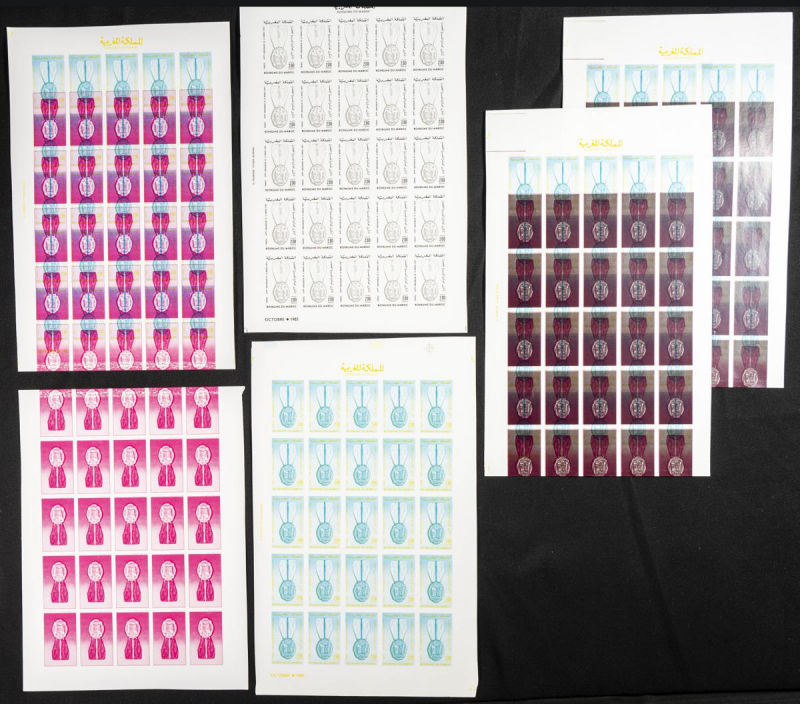 |**|Yvert 998/99. 1986. King Hassan II silver jubilee. Group of progressive plate proofs of the set. TO EXAM. Description of lots is limited to the cataloguing of the stamps and their characteristics. The total of the material