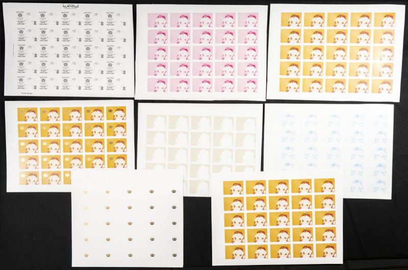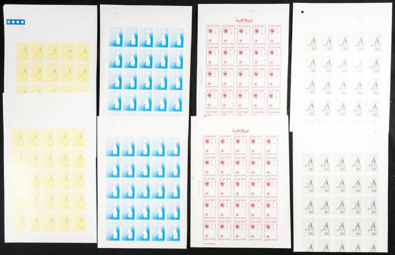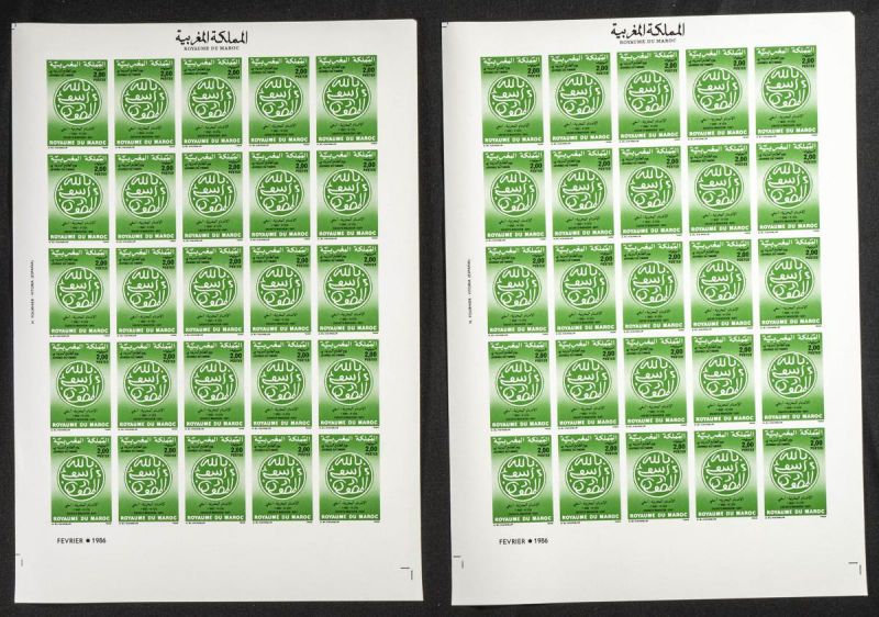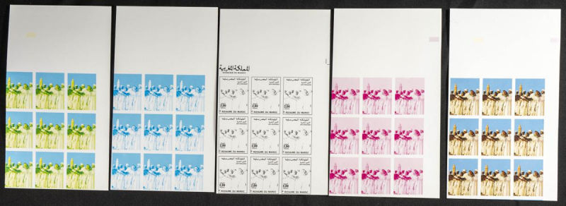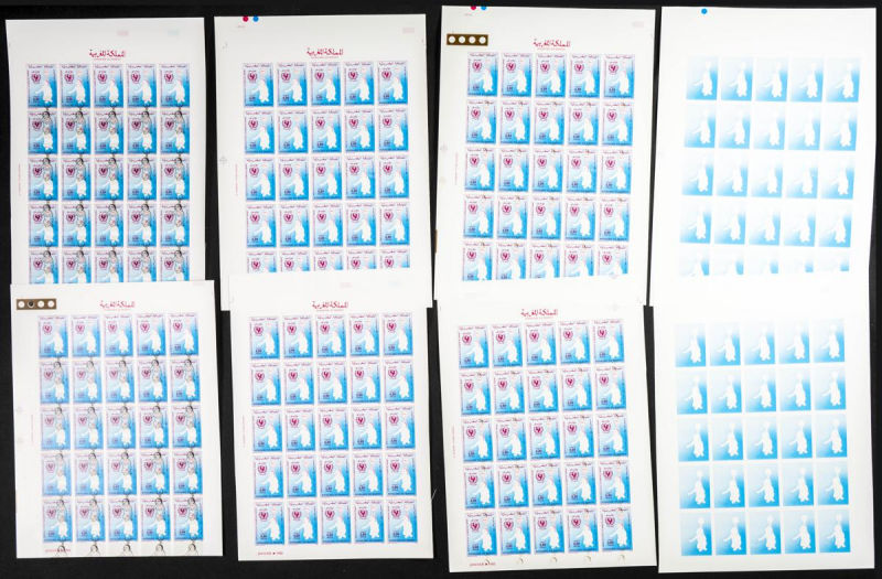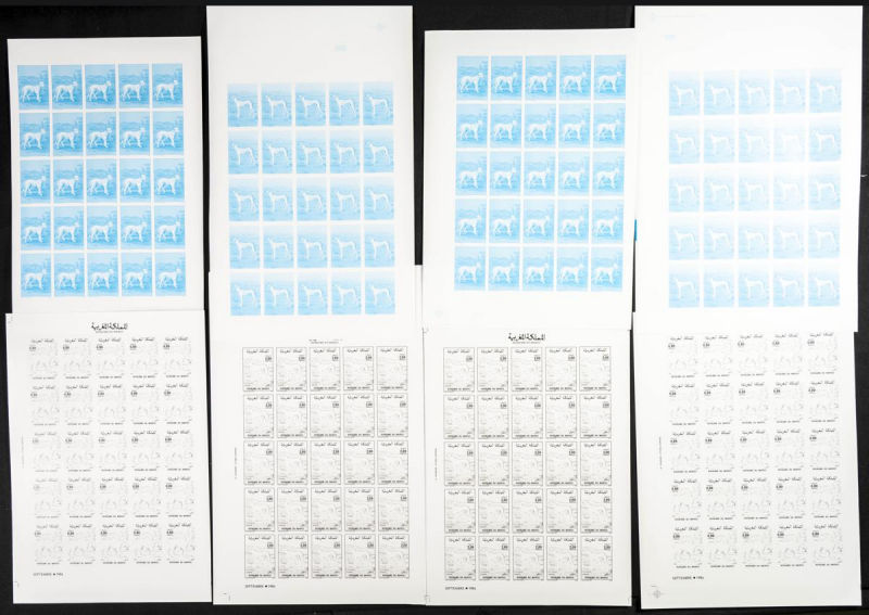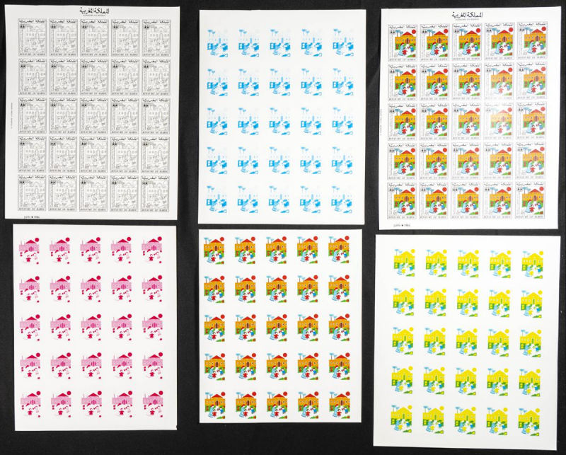 |**|Yvert 998/99. 1986. King Hassan II silver jubilee. Group of progressive plate proofs of the set. TO EXAM. Description of lots is limited to the cataloguing of the stamps and their characteristics. The total of the material