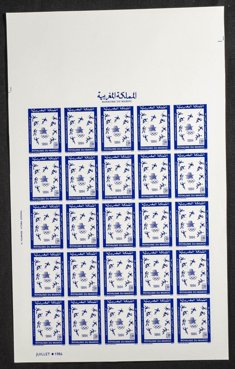 |**|Yvert 991. 1985. Panarab games. Group of progressive plate proofs of the set. TO EXAM. Description of lots is limited to the cataloguing of the stamps and their characteristics. The total of the material included in each