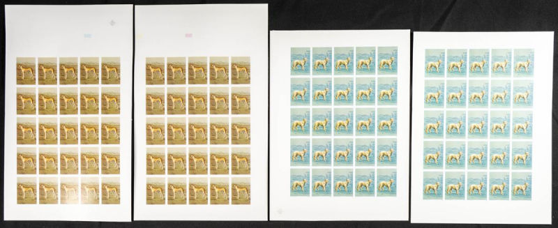 |**|Yvert 979/80. 1984. Dogs. Group of progressive plate proofs of the set. TO EXAM. Description of lots is limited to the cataloguing of the stamps and their characteristics. The total of the material included in each case is