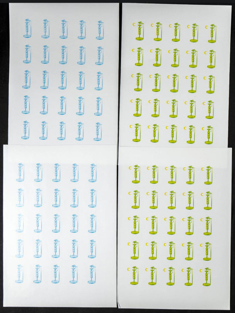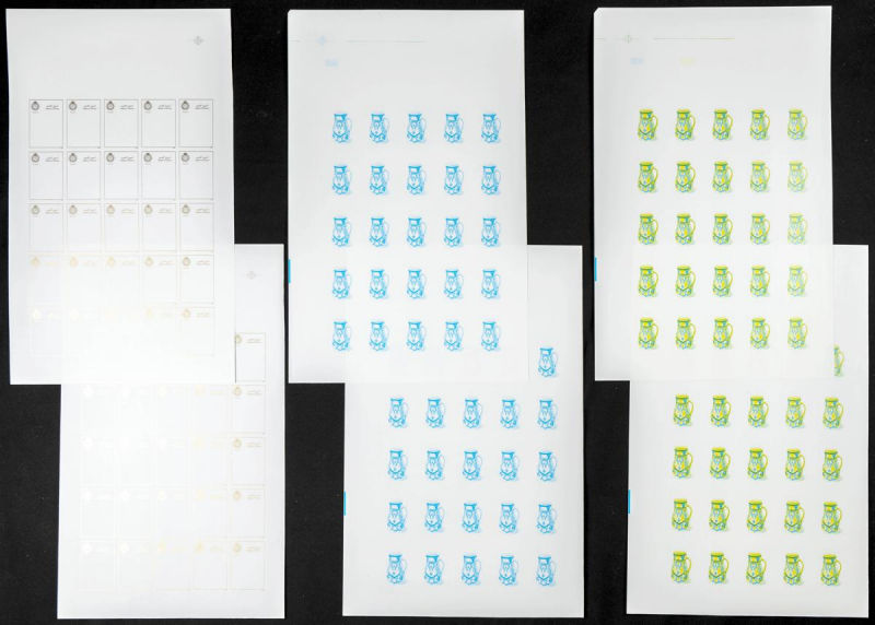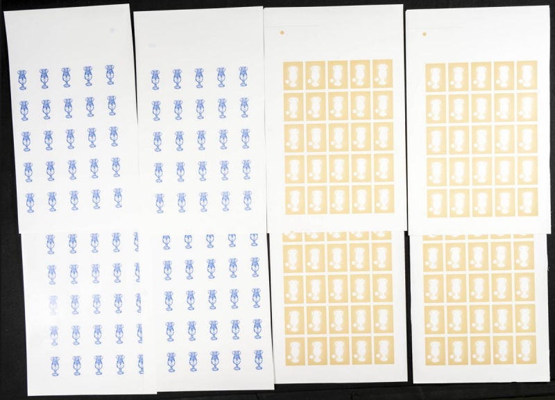 |**|Yvert 1003. 1986. Blind week, ceramics. Group of progressive plate proofs of the set. TO EXAM. Description of lots is limited to the cataloguing of the stamps and their characteristics. The total of the material included in