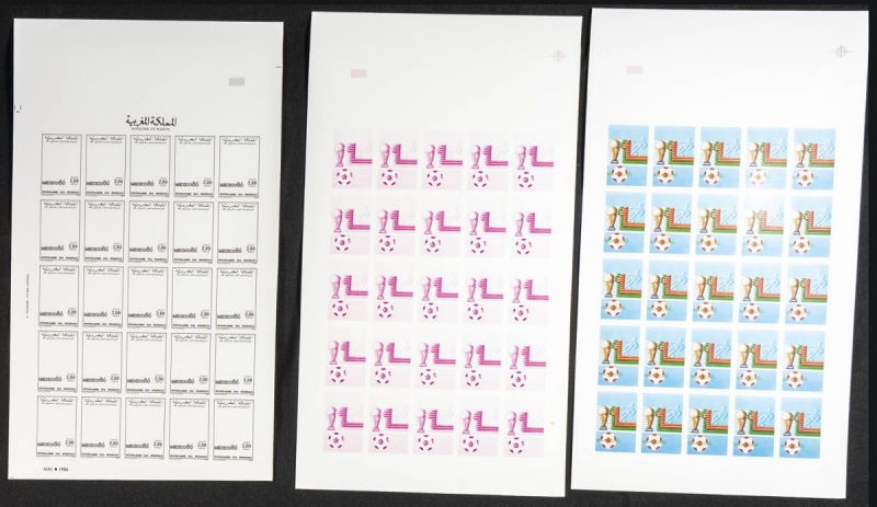 |**|Yvert 1005/06. 1986. Football games Mexico. Group of progressive plate proofs of the set. TO EXAM. Description of lots is limited to the cataloguing of the stamps and their characteristics. The total of the material included