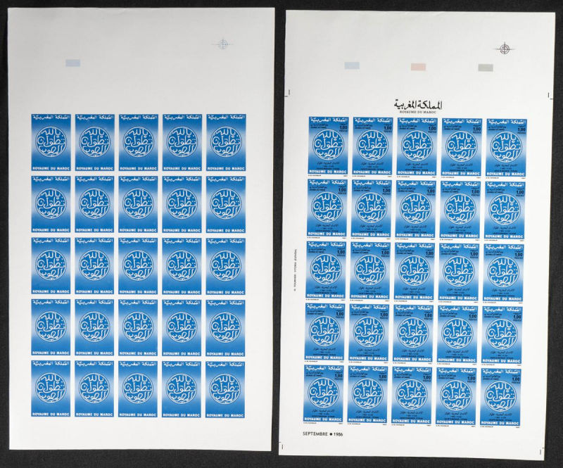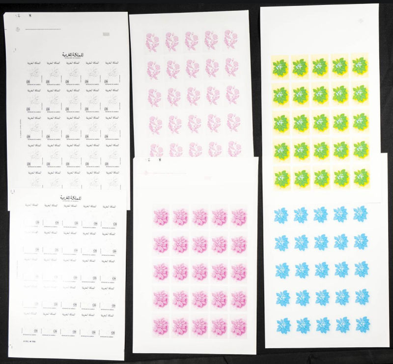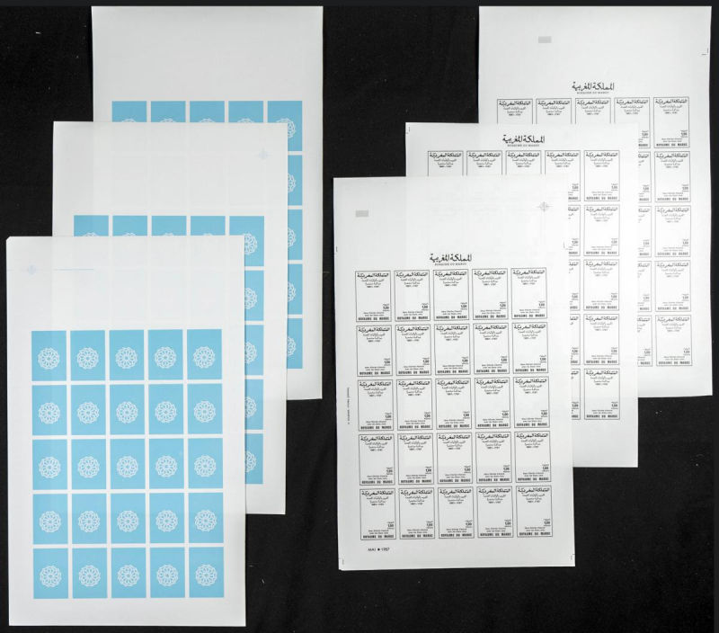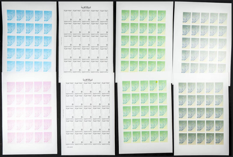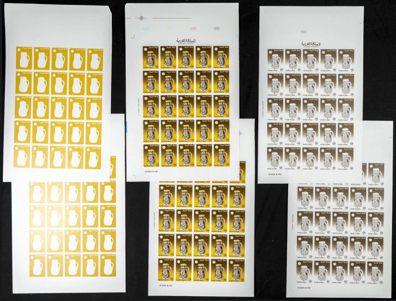 |**|Yvert 1021/25. 1987. Hasan II. Group of progressive plate proofs of the set. TO EXAM. Description of lots is limited to the cataloguing of the stamps and their characteristics. The total of the material included in each case