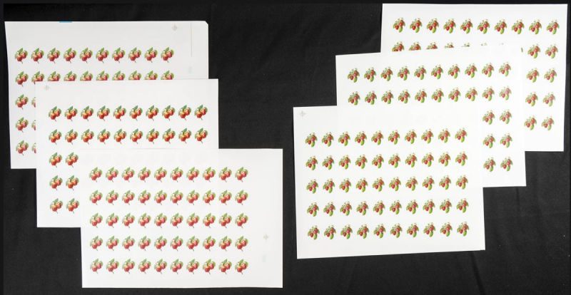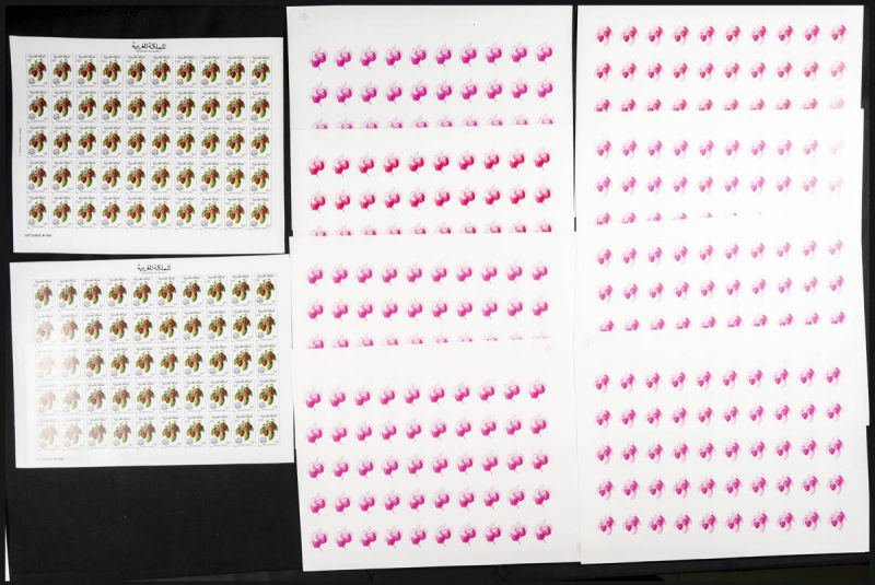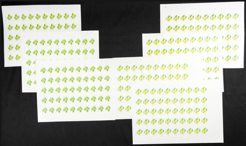 |**|Yvert T69/70. 1986. Postage due, fruits. Group of progressive plate proofs of the set. TO EXAM. Description of lots is limited to the cataloguing of the stamps and their characteristics. The total of the material included in