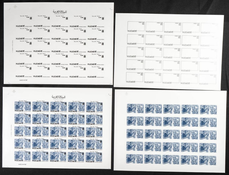 |**|Yvert 1026/27. 1987. Tanger conference. Group of progressive plate proofs of the set. TO EXAM. Description of lots is limited to the cataloguing of the stamps and their characteristics. The total of the material included in