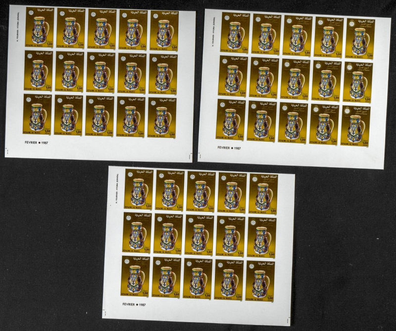 |**|Yvert 1030. 1987. Blind week, ceramics. Group of IMPERFORATED sets. TO EXAM. Description of lots is limited to the cataloguing of the stamps and their characteristics. The total of the material included in each case is