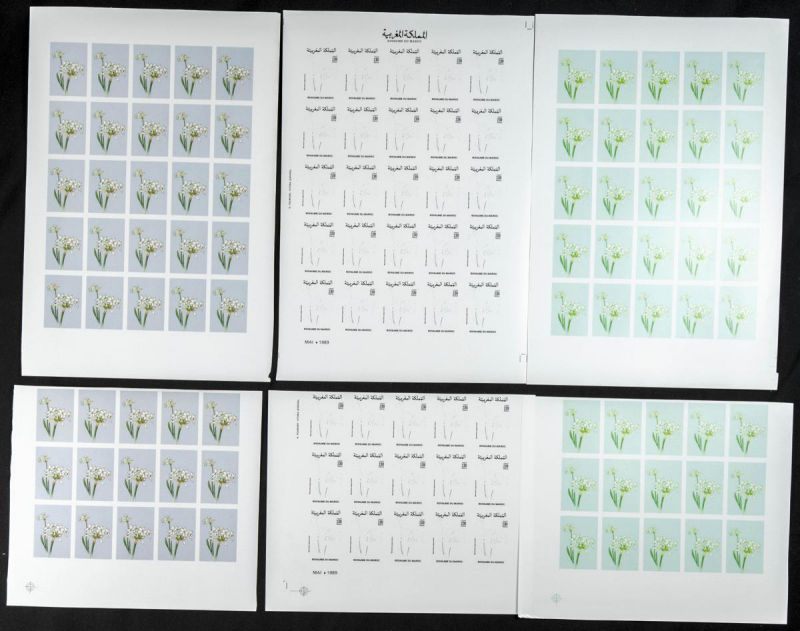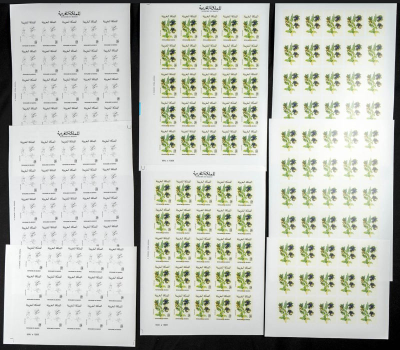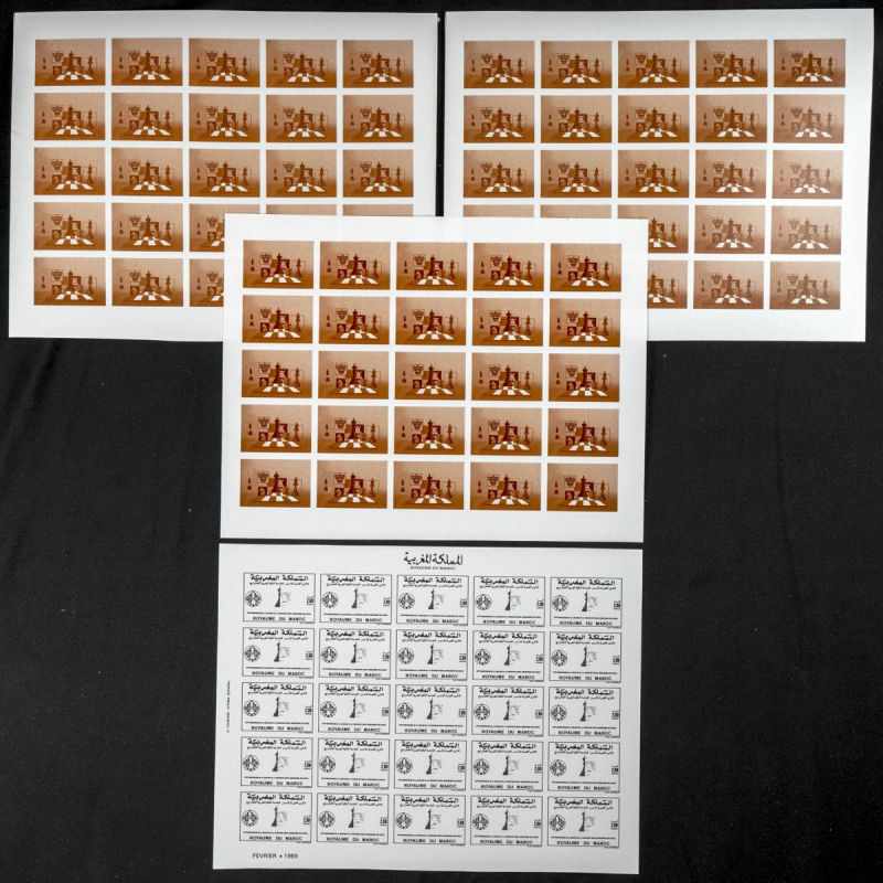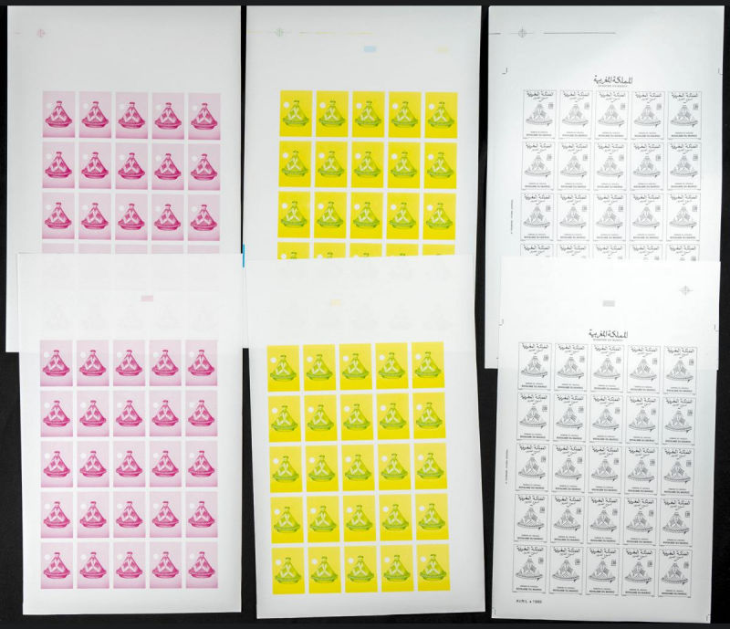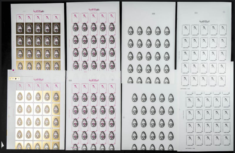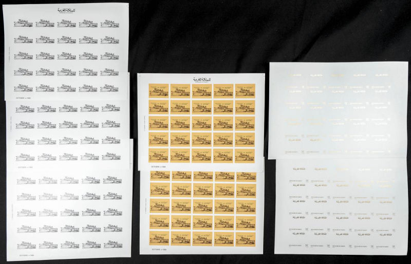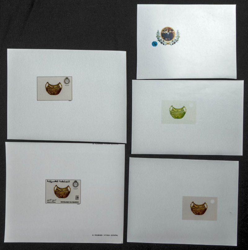 |**|Yvert 1068/69. 1989. King Hassan II 60th birthday. Group of progressive plate proofs of the set. TO EXAM. Description of lots is limited to the cataloguing of the stamps and their characteristics. The total of the material