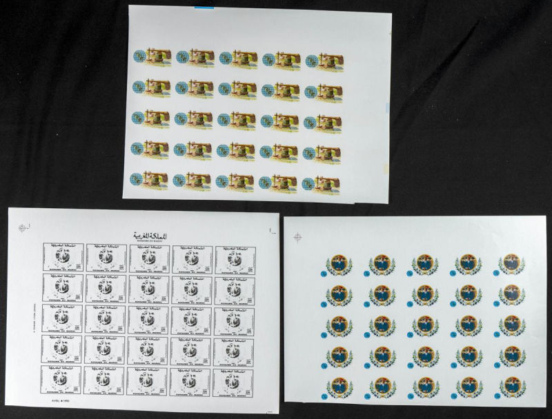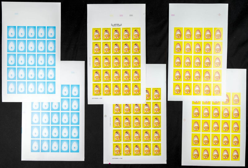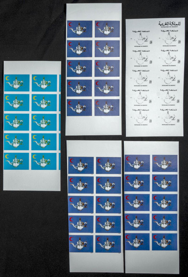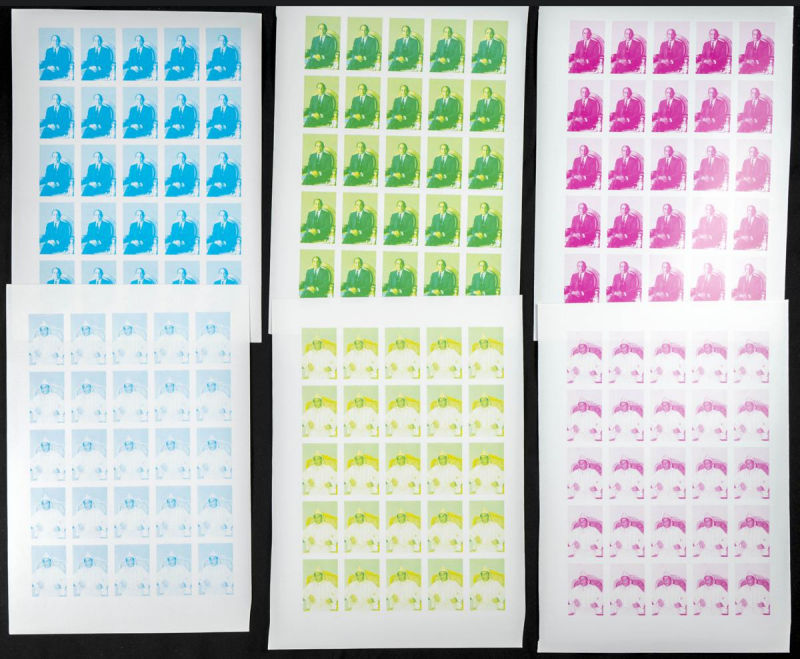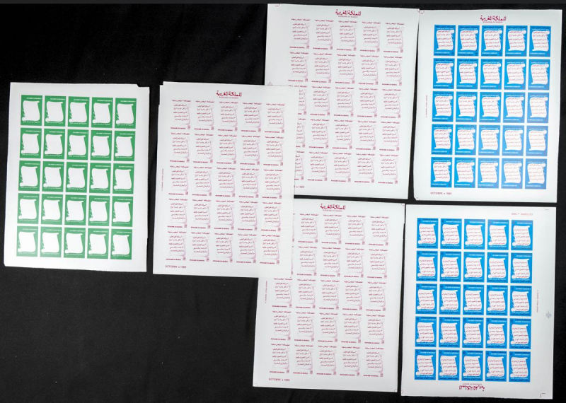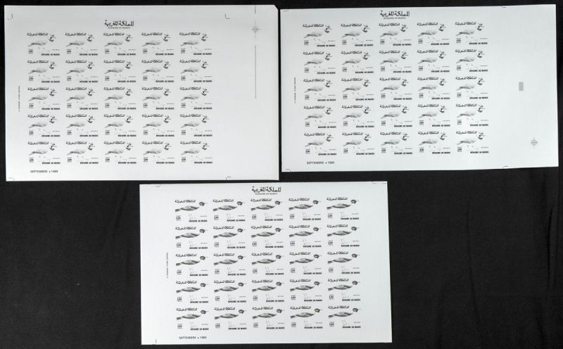 |**|Yvert 1068/69. 1989. King Hassan II 60th birthday. Group of progressive plate proofs of the set. TO EXAM. Description of lots is limited to the cataloguing of the stamps and their characteristics. The total of the material