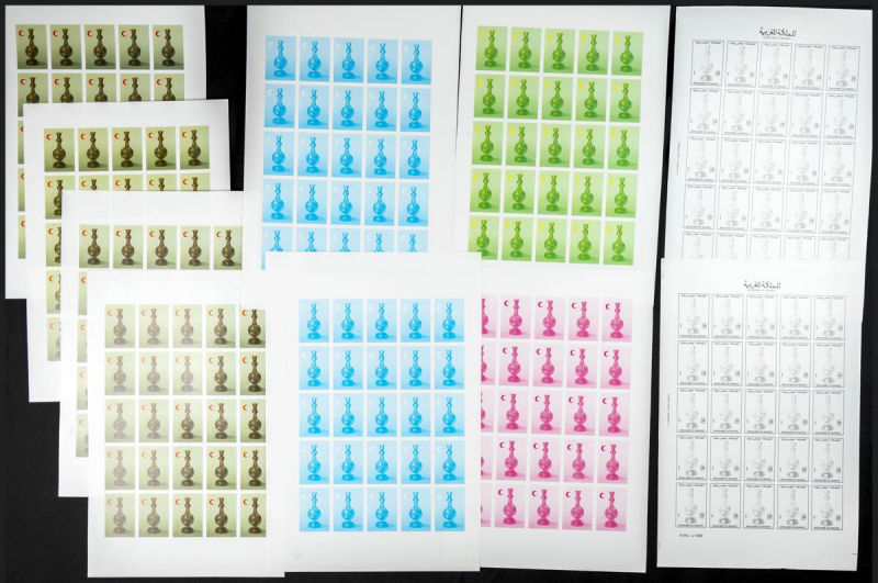 |**|Yvert 1083. 1990. Blind week, ceramics. Group of progressive plate proofs of the set. TO EXAM. Description of lots is limited to the cataloguing of the stamps and their characteristics. The total of the material included in