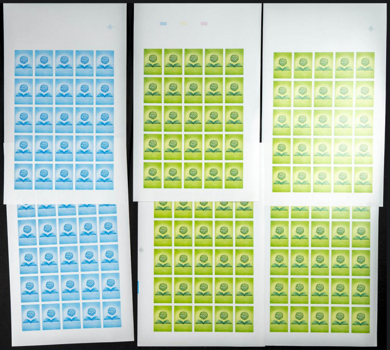 |**|Yvert 1085. 1990. International Literacy Year. Group of progressive plate proofs of the set. TO EXAM. Description of lots is limited to the cataloguing of the stamps and their characteristics. The total of the material