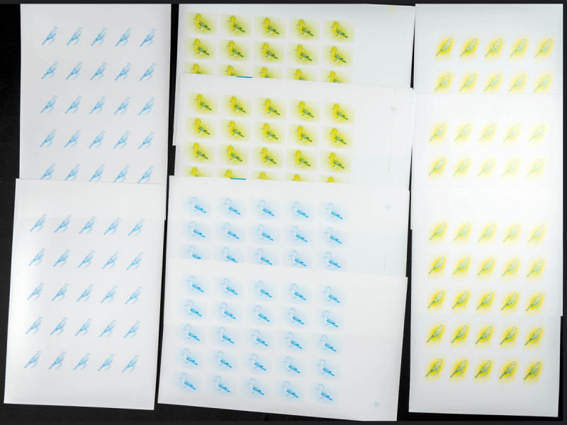 |**|Yvert 1086/87. 1990. Birds. Group of progressive plate proofs of the set. TO EXAM. Description of lots is limited to the cataloguing of the stamps and their characteristics. The total of the material included in each case is