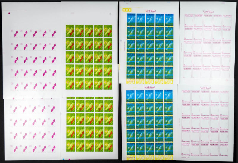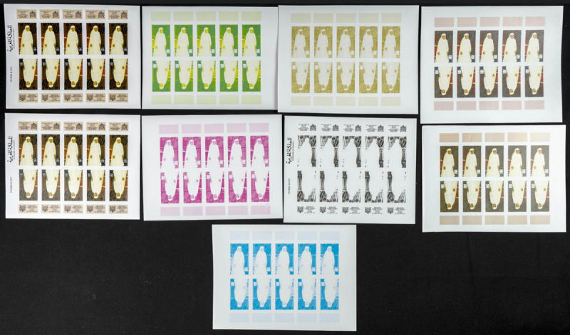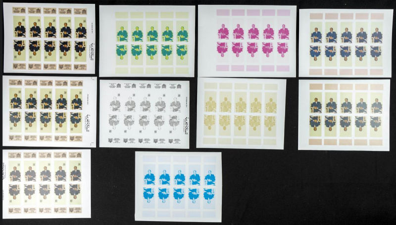 |**|Yvert 1089. 1990. 35 years independence. Group of progressive plate proofs of the set. TO EXAM. Description of lots is limited to the cataloguing of the stamps and their characteristics. The total of the material included in