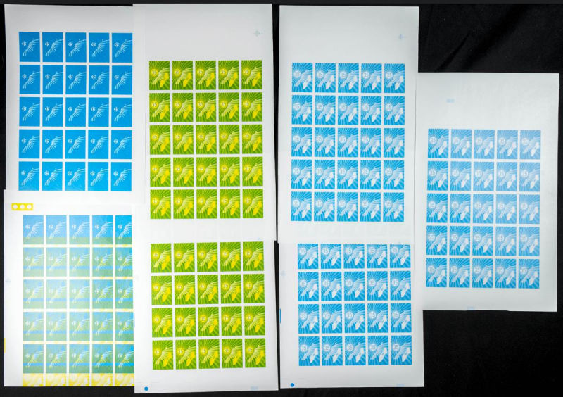|**|Yvert 1096. 1990. U.N. development programme. Group of progressive plate proofs of the set. TO EXAM. Description of lots is limited to the cataloguing of the stamps and their characteristics. The total of the material