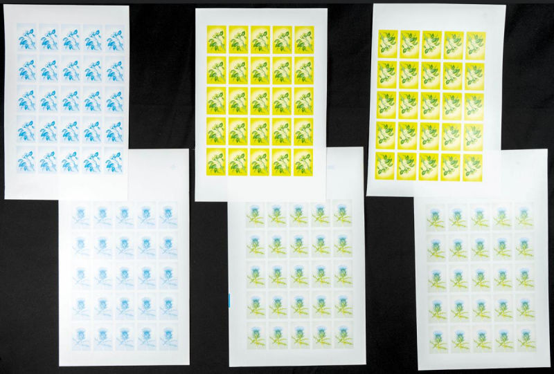 |**|Yvert 1102/03. 1991. Medical plants. Group of progressive plate proofs of the set. TO EXAM. Description of lots is limited to the cataloguing of the stamps and their characteristics. The total of the material included in