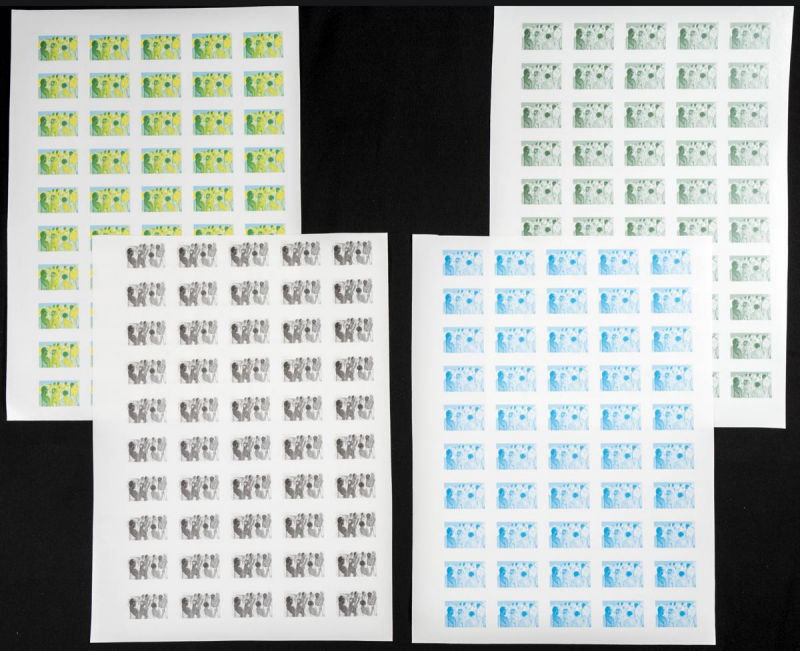 |**|Yvert 808/12. 1979. Children’s Paintings. Group of progressive plate proofs of the set. TO EXAM. Description of lots is limited to the cataloguing of the stamps and their characteristics. The total of the material included