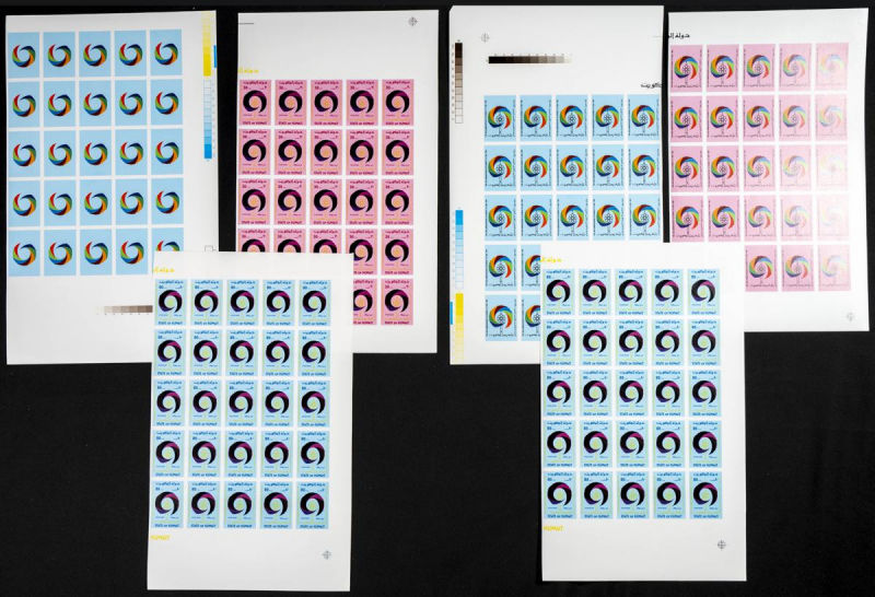 |**|Yvert 829/30. 1979. Kuwait Airways. Group of progressive plate proofs of the set. TO EXAM. Description of lots is limited to the cataloguing of the stamps and their characteristics. The total of the material included in each