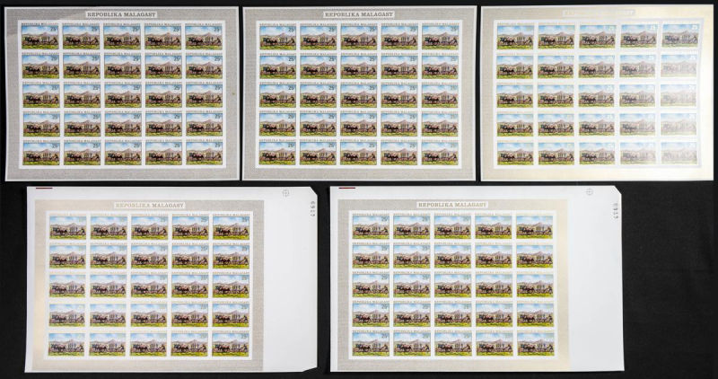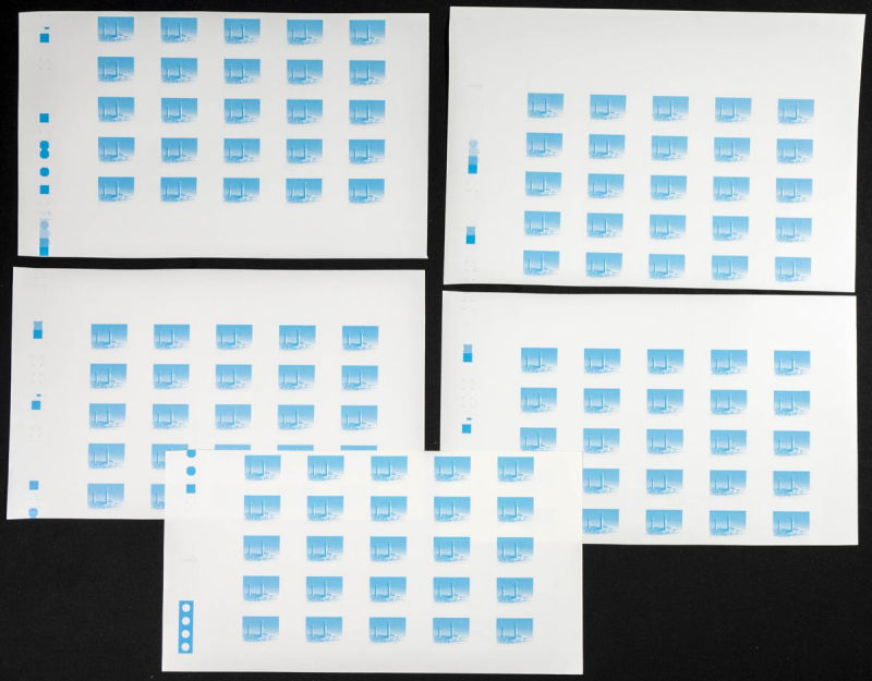 |**|Yvert 1120/22. 1987. AL Qurain Housing Project. Group of progressive plate proofs of the set. TO EXAM. Description of lots is limited to the cataloguing of the stamps and their characteristics. The total of the material