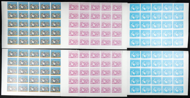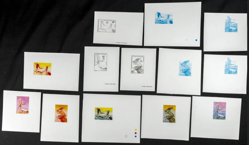 1951 image|**|Yvert B172/74. 1976. Birds. Group of progressive plate proofs of the set. TO EXAM.