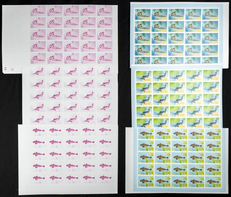 1957 image|**|Yvert 481/82. 1979. Fish. Group of progressive plate proofs of the set. TO EXAM.