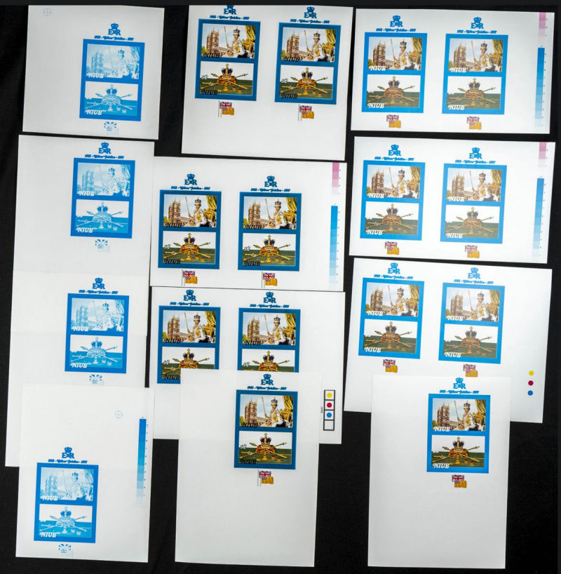 1967 image|**|Yvert B1. 1977. Silver jubilee. Group of progressive plate proofs of the set. TO EXAM.