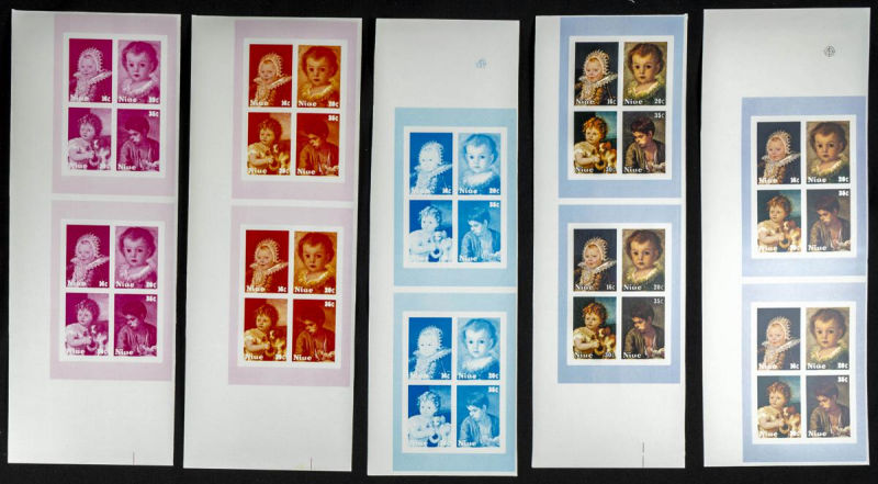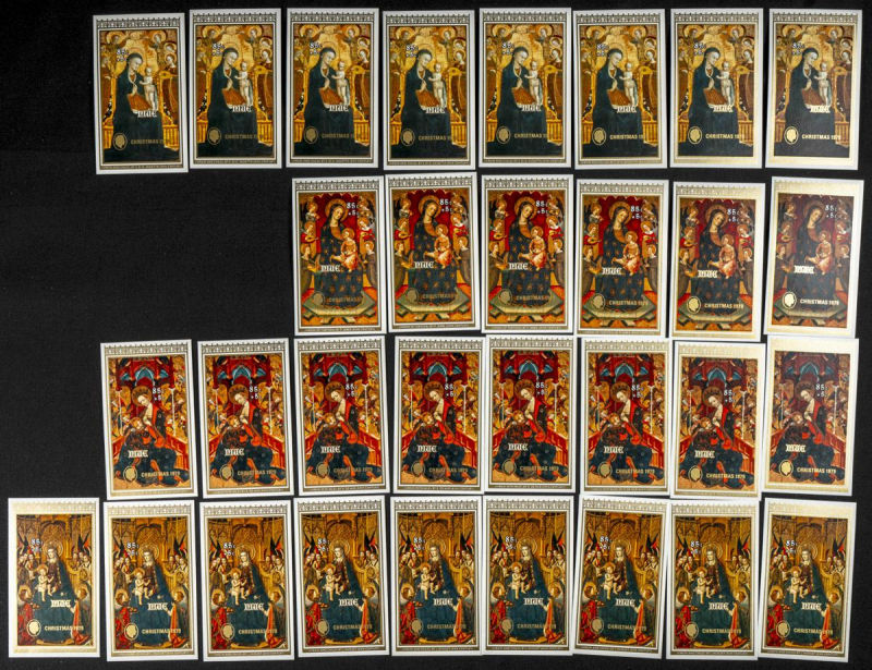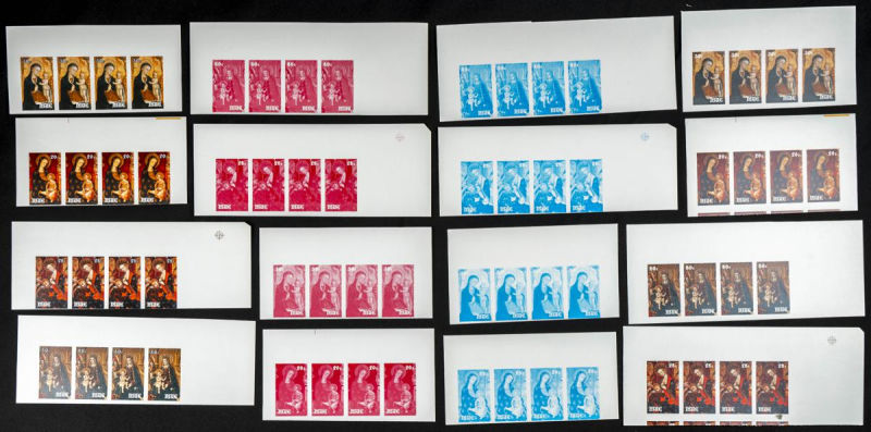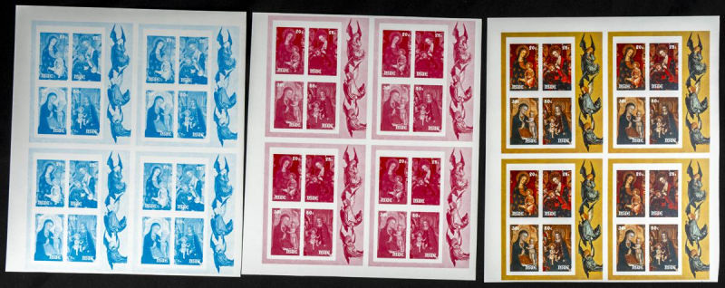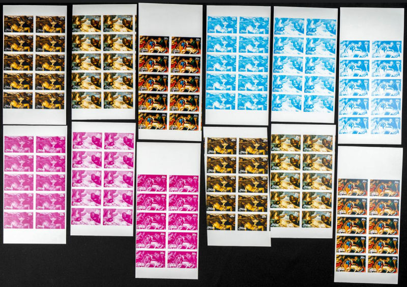 |**|Yvert B23. 1979. Christmas. Group of progressive plate proofs of the set. TO EXAM. Description of lots is limited to the cataloguing of the stamps and their characteristics. The total of the material included in each case is