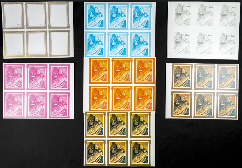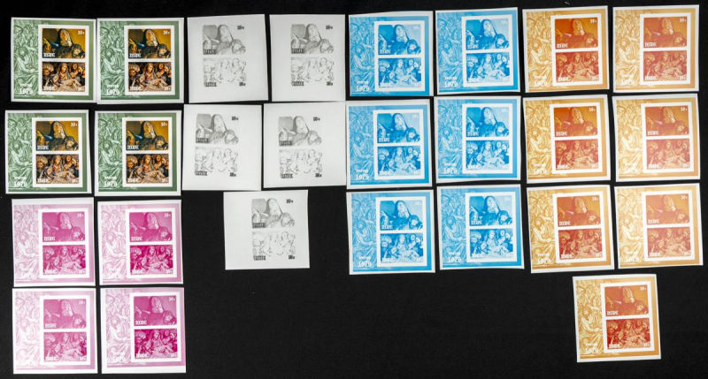 |**|Yvert B12. 1979. Easter. Group of progressive plate proofs of the set. TO EXAM. Description of lots is limited to the cataloguing of the stamps and their characteristics. The total of the material included in each case is
