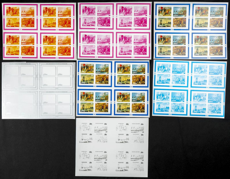 |**|Yvert B21. 1979. Death of James Cook. Group of progressive plate proofs of the set. TO EXAM. Description of lots is limited to the cataloguing of the stamps and their characteristics. The total of the material included in
