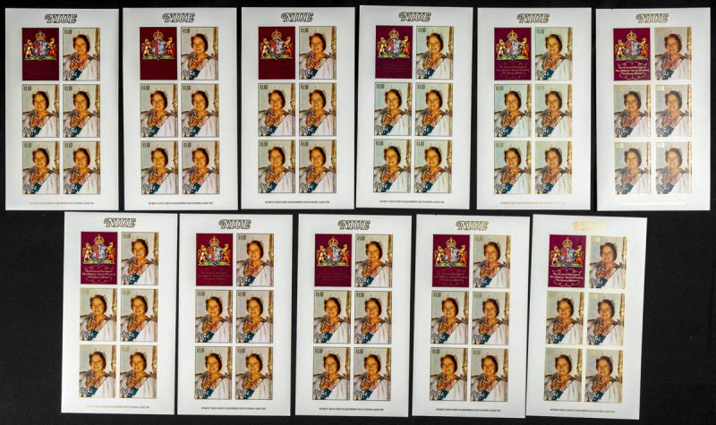 |**|Yvert 303. 1980. Queen mother. Group of IMPERFORATED sets. TO EXAM. Description of lots is limited to the cataloguing of the stamps and their characteristics. The total of the material included in each case is photographed