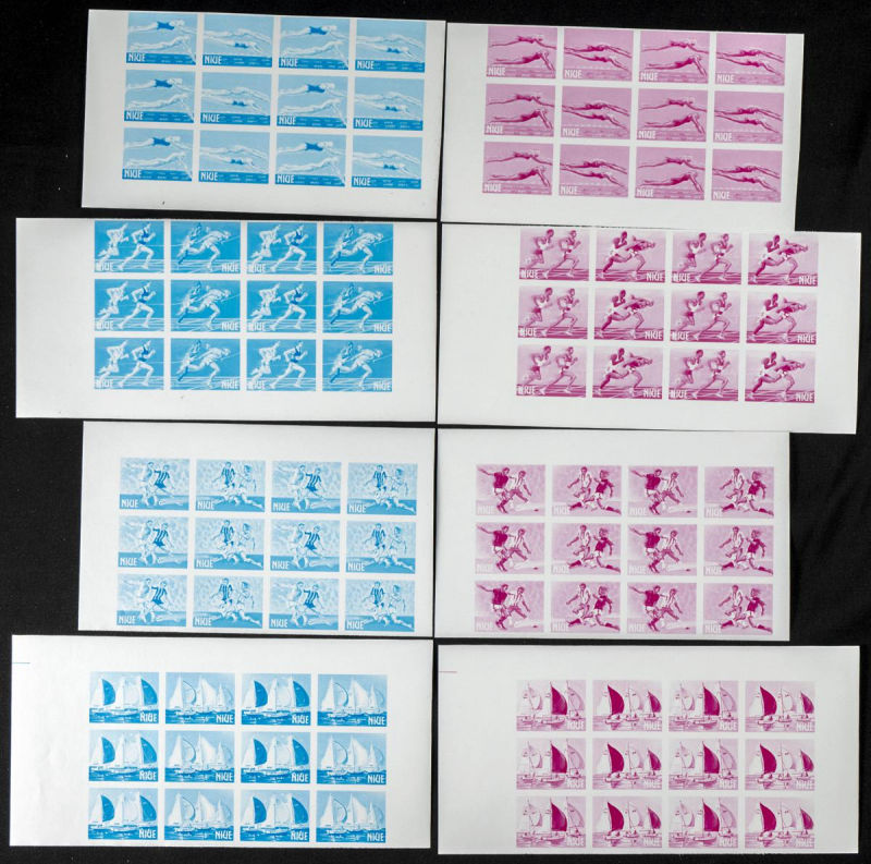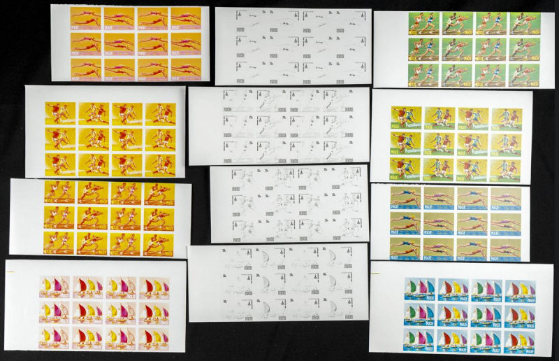 |**|Yvert B38. 1980. Olympic games Moscow. Group of progressive plate proofs of the set. TO EXAM. Description of lots is limited to the cataloguing of the stamps and their characteristics. The total of the material included in