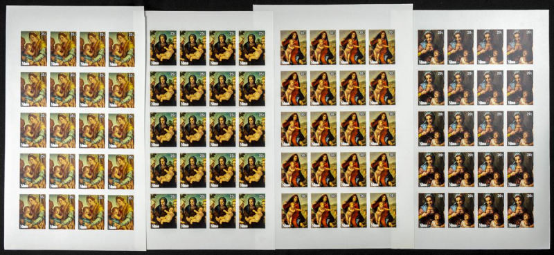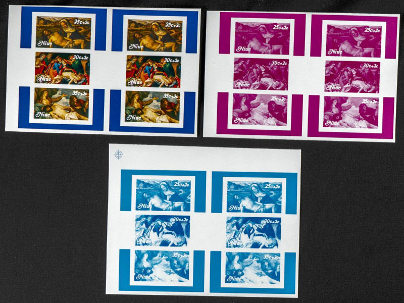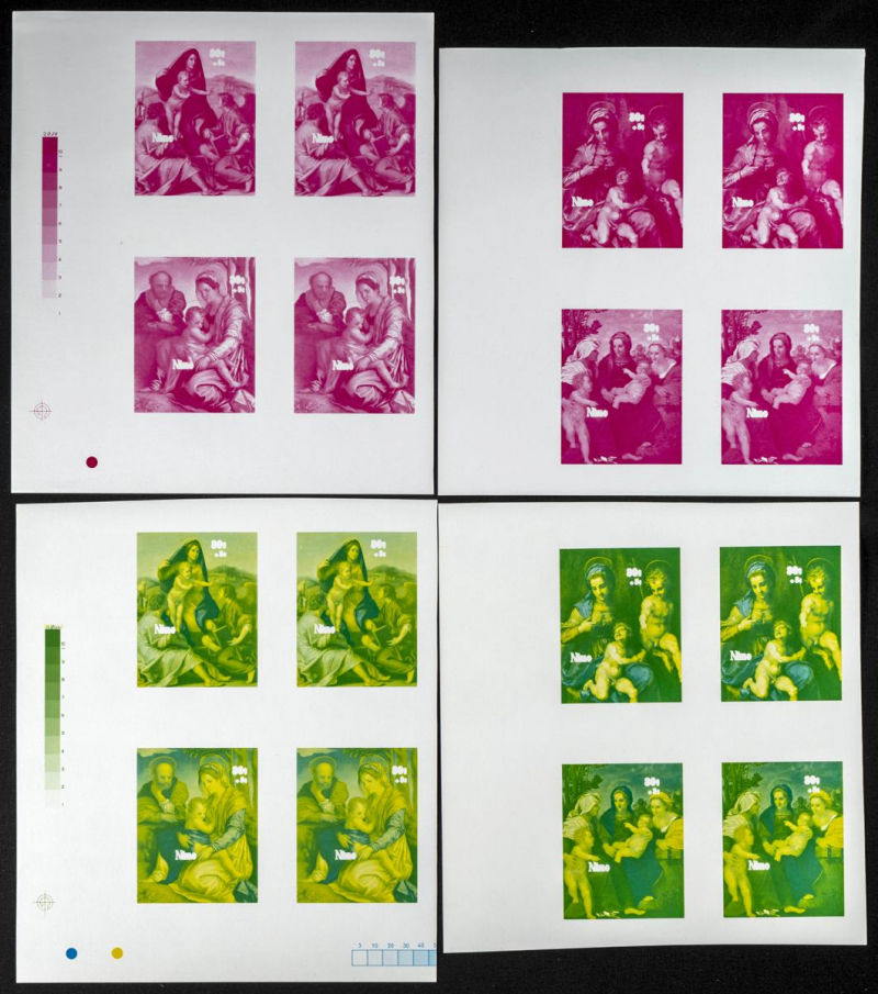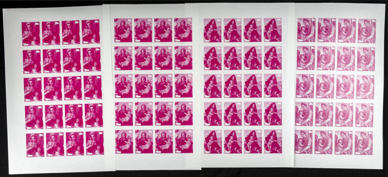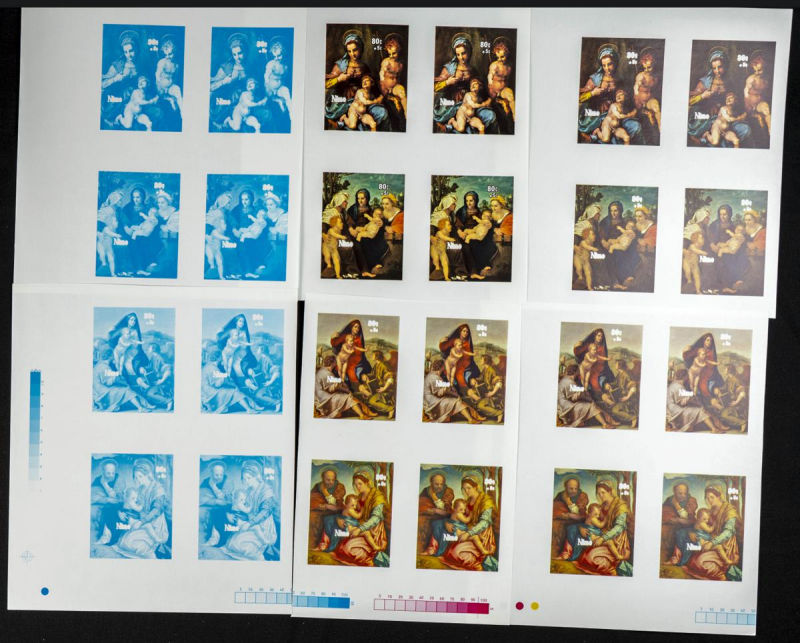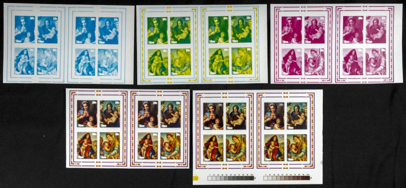 |**|Yvert B39. 1980. Christmas. Group of progressive plate proofs of the set. TO EXAM. Description of lots is limited to the cataloguing of the stamps and their characteristics. The total of the material included in each case is