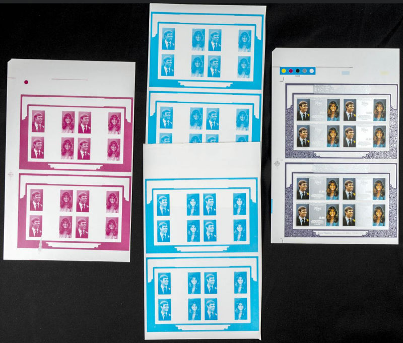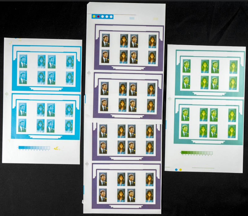 |**|1981. Andrew wedding. Group of progressive plate proofs of the set. (Michel: 671). TO EXAM. Description of lots is limited to the cataloguing of the stamps and their characteristics. The total of the material included in
