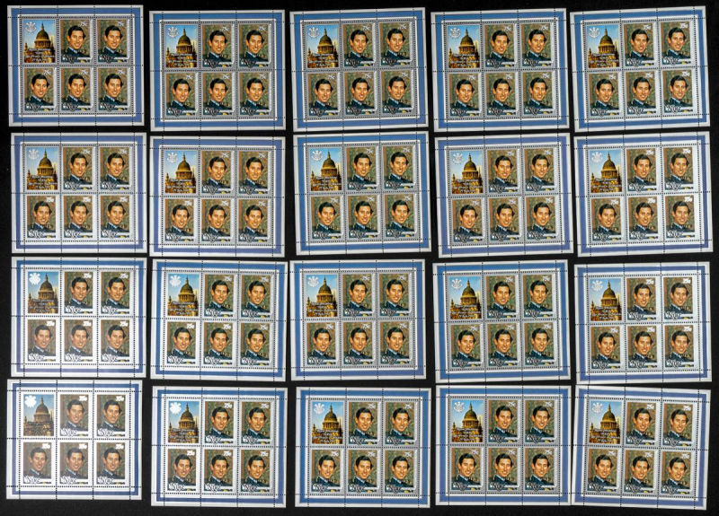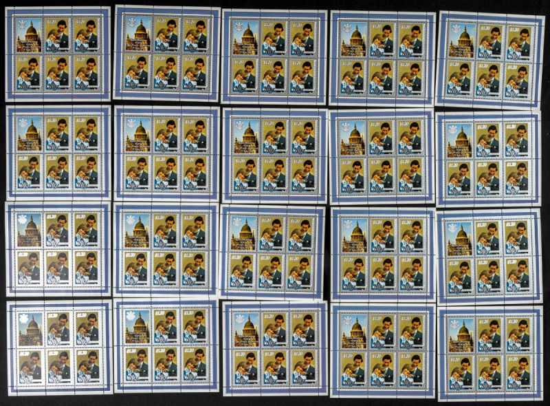 |**|1981. Andrew wedding. Group of IMPERFORATED sets. (Michel: 671). TO EXAM. Description of lots is limited to the cataloguing of the stamps and their characteristics. The total of the material included in each case is