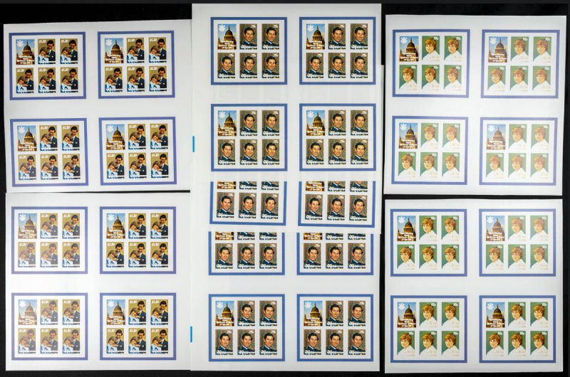 |**|Yvert B48. 1981. Charles & Diana wedding. Group of IMPERFORATED sets. TO EXAM. Description of lots is limited to the cataloguing of the stamps and their characteristics. The total of the material included in each case is