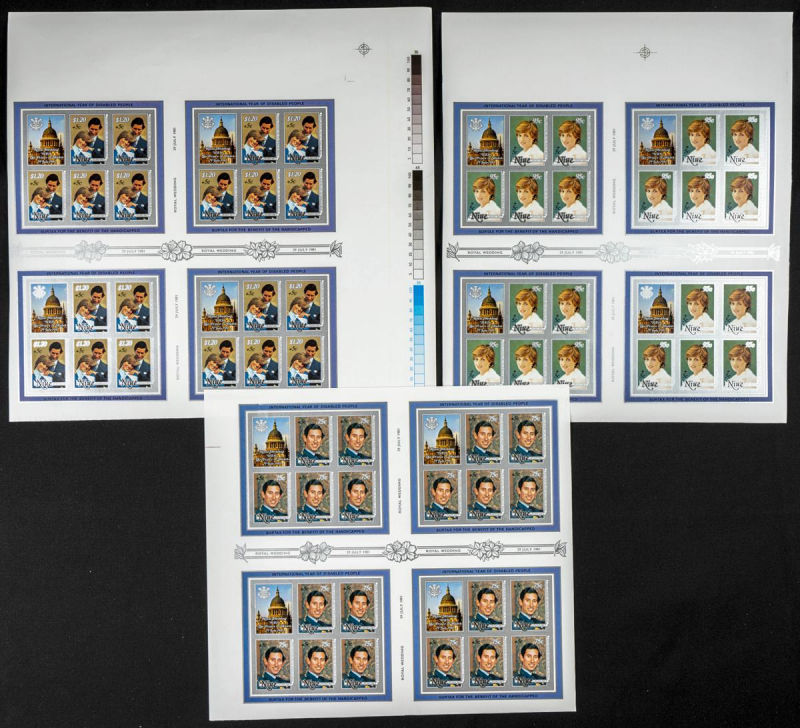 |**|Yvert 343/45. 1981. Charles & Diana wedding. Group of progressive plate proofs of the set. TO EXAM. Description of lots is limited to the cataloguing of the stamps and their characteristics. The total of the material