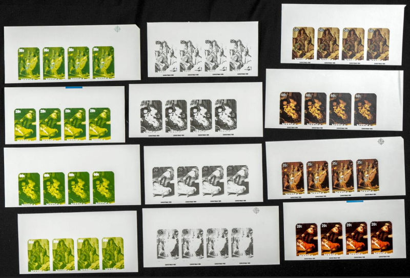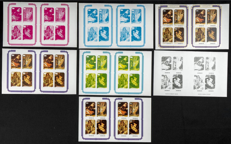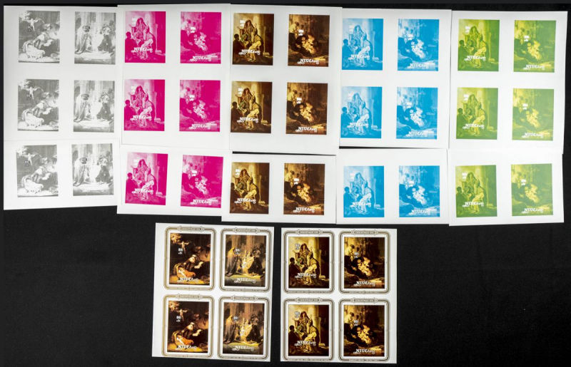 |**|Yvert B51. 1981. Christmas, Rembrandt. Group of progressive plate proofs of the set. TO EXAM. Description of lots is limited to the cataloguing of the stamps and their characteristics. The total of the material included in