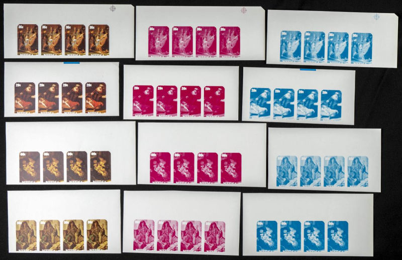 |**|Yvert 361/64. 1981. Christmas, Rembrandt. Group of progressive plate proofs of the set. TO EXAM. Description of lots is limited to the cataloguing of the stamps and their characteristics. The total of the material included
