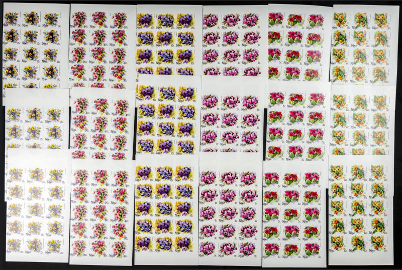 |**|1981. Flowers. Group of progressive plate proofs of the set. (Michel: 382/11). TO EXAM. Description of lots is limited to the cataloguing of the stamps and their characteristics. The total of the material included in each