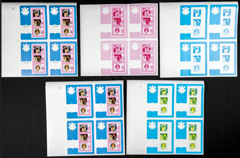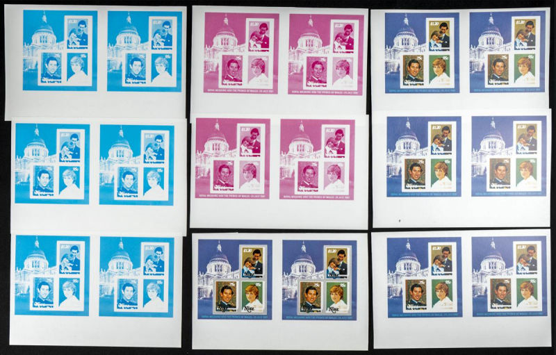 |**|Yvert B48. 1981. Charles & Diana wedding. Group of progressive plate proofs of the set. TO EXAM. Description of lots is limited to the cataloguing of the stamps and their characteristics. The total of the material included