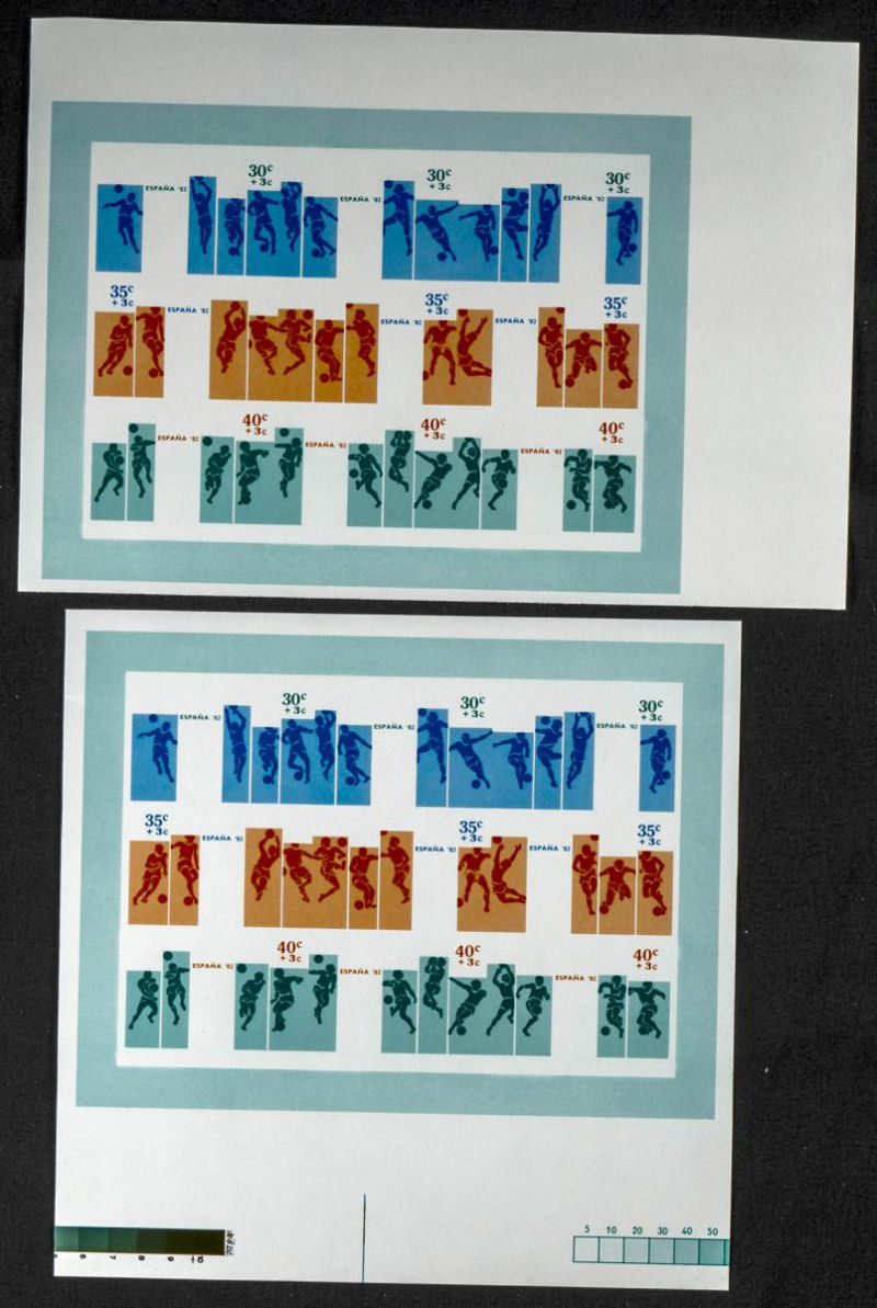 |**|Yvert B49. 1981. World Cup Football. Group of progressive plate proofs of the set. TO EXAM. Description of lots is limited to the cataloguing of the stamps and their characteristics. The total of the material included in