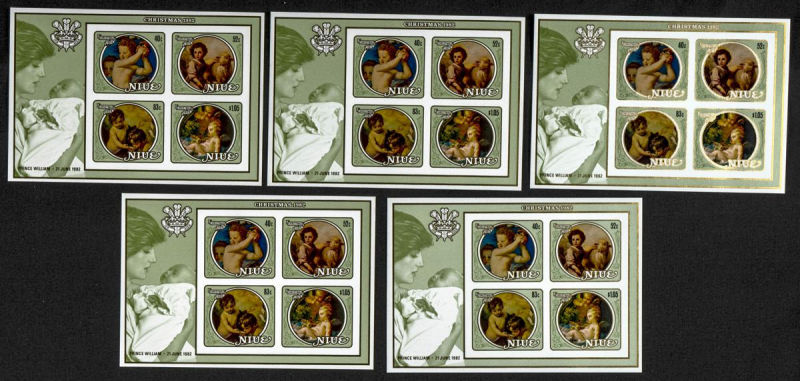|**|Yvert B57. 1982. Birth of William. Group of progressive plate proofs of the set. TO EXAM. Description of lots is limited to the cataloguing of the stamps and their characteristics. The total of the material included in each