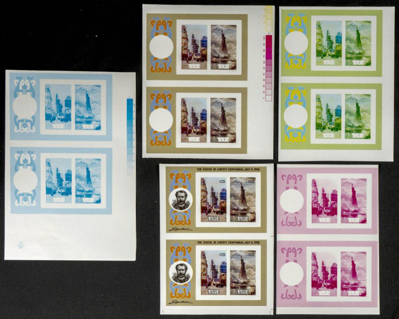 |**|Yvert B103. 1986. Statue of liberty. Group of progressive plate proofs of the set. TO EXAM. Description of lots is limited to the cataloguing of the stamps and their characteristics. The total of the material included in