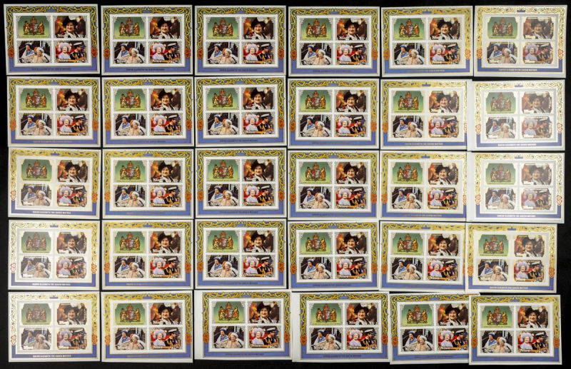 |**|1986. Queen mother. Group of IMPERFORATED sets. (Michel: B104). TO EXAM. Description of lots is limited to the cataloguing of the stamps and their characteristics. The total of the material included in each case is