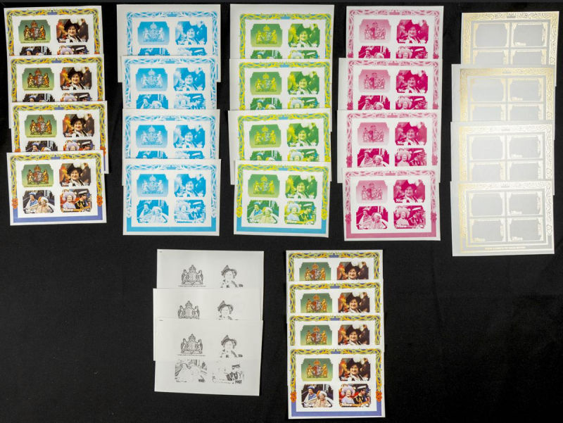 |**|1986. Queen mother. Group of progressive plate proofs of the set. (Michel: B104). TO EXAM. Description of lots is limited to the cataloguing of the stamps and their characteristics. The total of the material included in each