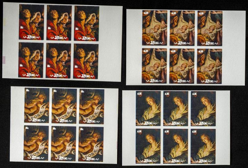|**|1988. Christmas, Rubens. Group of progressive plate proofs of the set. (Michel: 737/40). TO EXAM. Description of lots is limited to the cataloguing of the stamps and their characteristics. The total of the material included